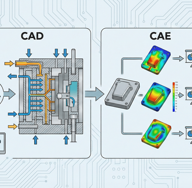 Parça tasarımı tamamlanmadan önce, enjeksiyon sırasında hatalar ile karşılaşmamak, istenen ürün özelliklerinin korunabilmesi için; Enjeksiyon Dolum analizi, Soğutma analizi, Çarpılma ve Çöküntü analizi yapılır.